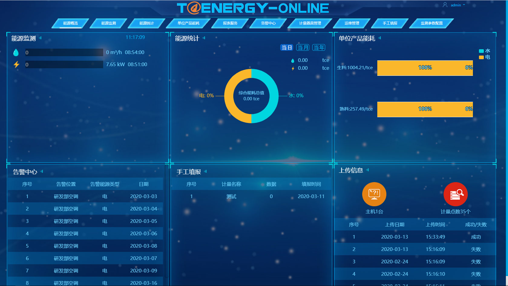 能源概况的功能是帮助重点用能单位了解企业用能全貌、查看数据上传成功率、清楚终端设备在线状态。