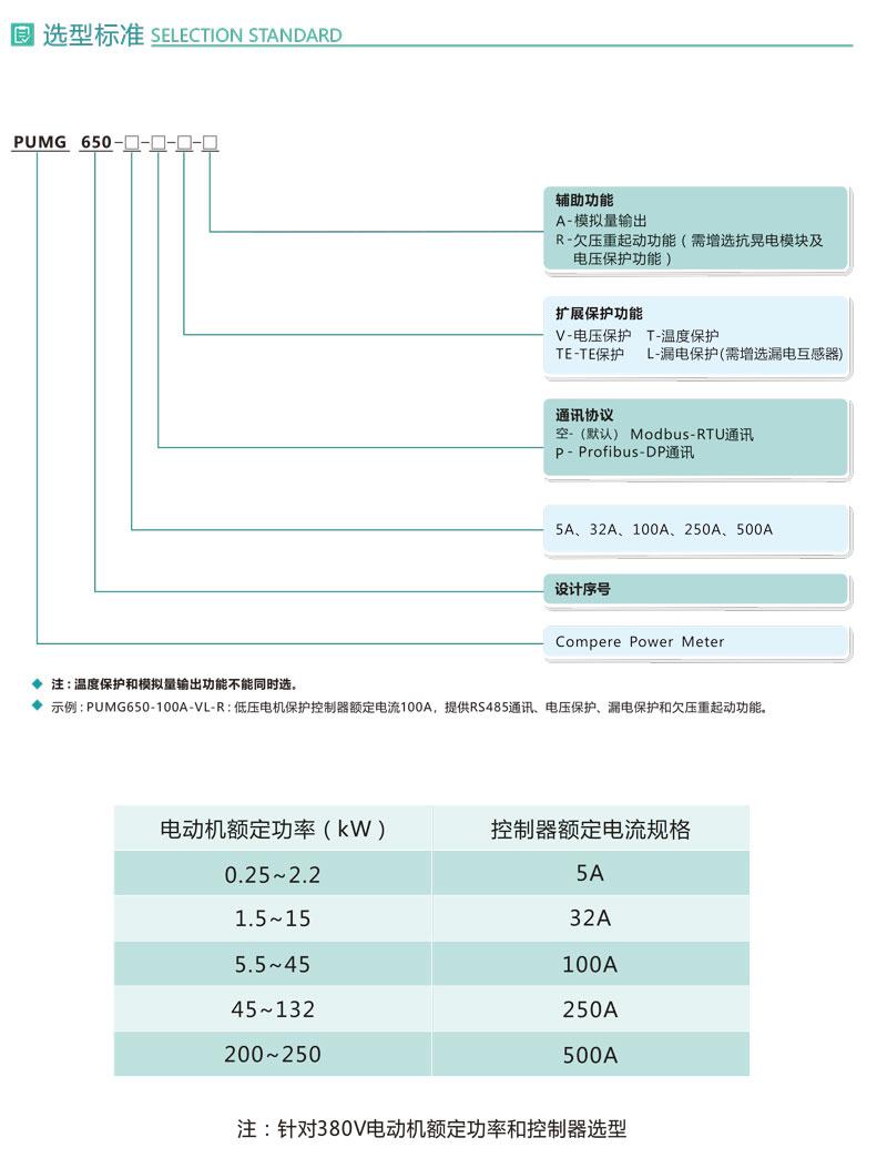 PUMG650系列低压电动机保护控制器适用于额定电压380V至660V、额定电流5A至500A的控制保护回路,提供了完善的保护控制措施,基于多种总线的通讯方式可以实现电机的网络化管理.