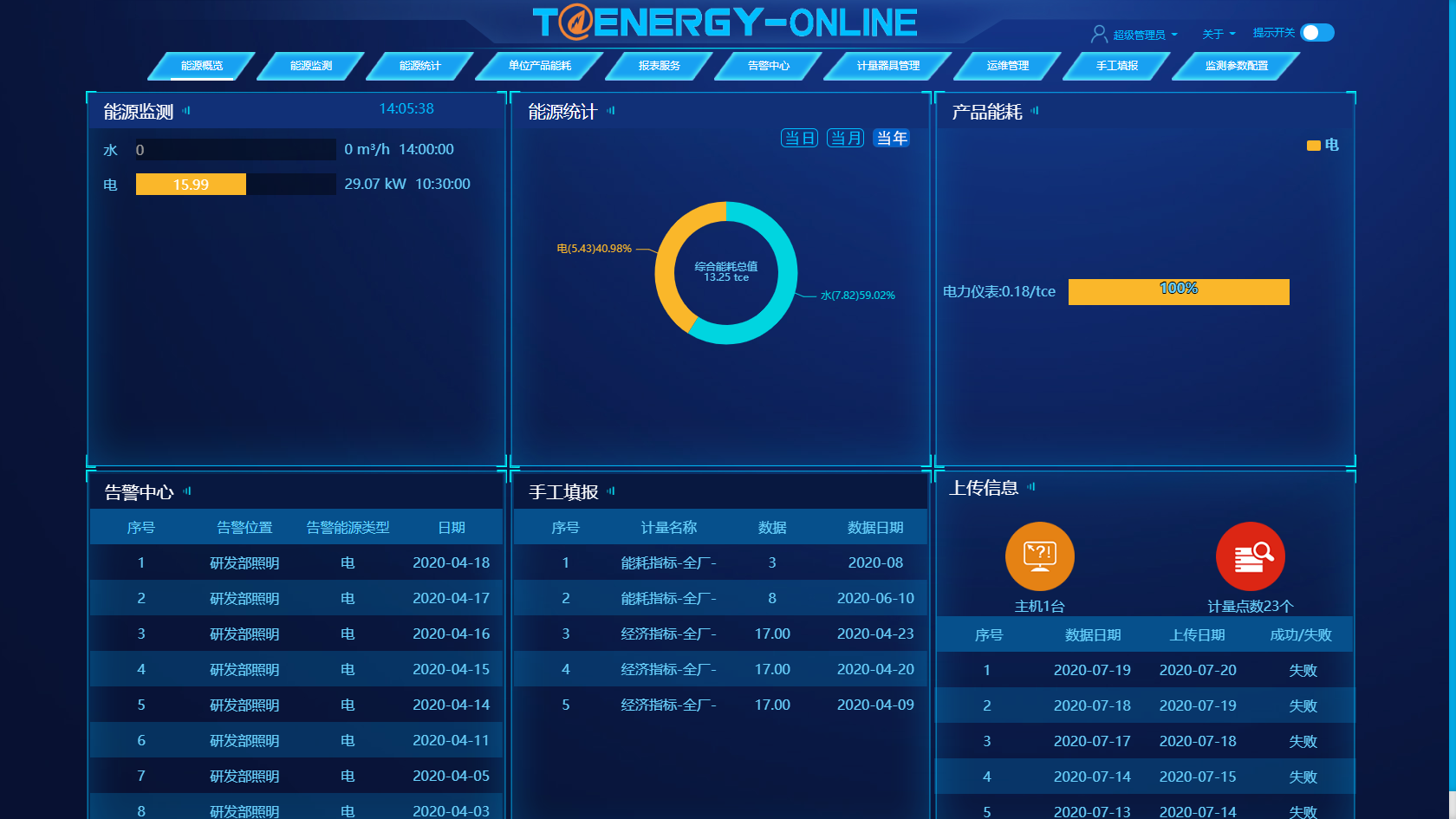 T@ENERGY-ONLINE重点用能单位能耗在线监测系统具有现场能耗数据采集、存储、分析、网络安全、应用展现、数据转发等功能。为政府缕清能源消耗、开展节能形势分析及预测、预警、提高节能宏观调控能力,及时提供了数据支撑。