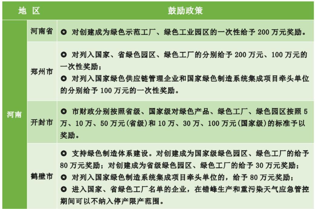 鹤壁市:对获得省级绿色工厂称号的企业给予一次性奖励30万元。