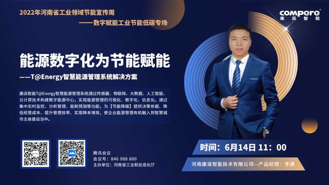 2022年6月,响应国家发改委与河南省工信厅“节能宣传周”活动要求,澳门新葡平台积极响应,主动配合完成数字赋能工业节能低碳专场活动,以线上宣传的方式,向社会及工业企业完成主题为《能源数字化为节能赋能--T@Energy智慧能源管理系统解决方案》的宣讲活动。