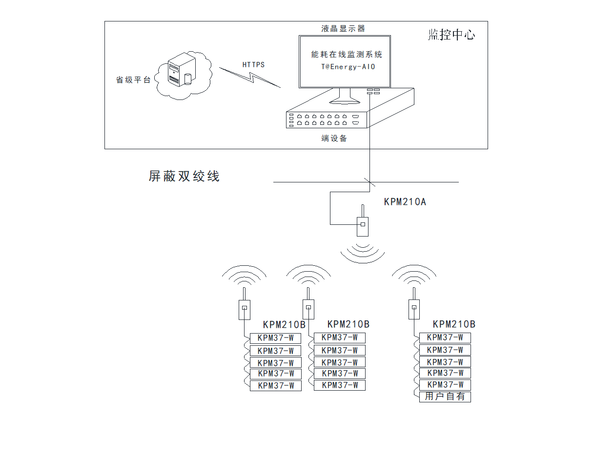 整个方案需要新增通讯管理机,4台智能电力仪表。将通讯管理机安装在配电室,5台智能电力仪表通过屏蔽双绞线直接接入通讯管理机,最终通讯管理机使用企业现有局域网将数据传输至端设备。